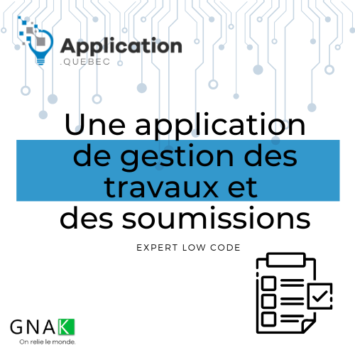 L’application « Travaux et soumission » s’adresse à des entreprises dont les activités impliquent de soumettre des prix et de suivre la progression de projets. Cette application peut convenir, par exemple, aux domaines de l’électricité et de la plomberie. Ce gestionnaire implique les données suivantes : les banques de données des clients, des employés et des produits, le suivi des dépenses et des frais supplémentaires, ainsi que les formulaires de soumission et de feuilles de temps. De plus, des rapports sont générés automatiquement.