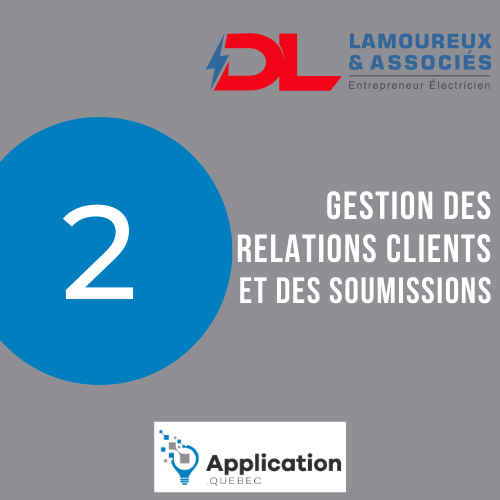 En d'autres termes, c'est un CRM (Customer Relationship Management) + un gestionnaire automatisé de soumissions qui a été mis sur pieds pour DL entrepreneur électricien.